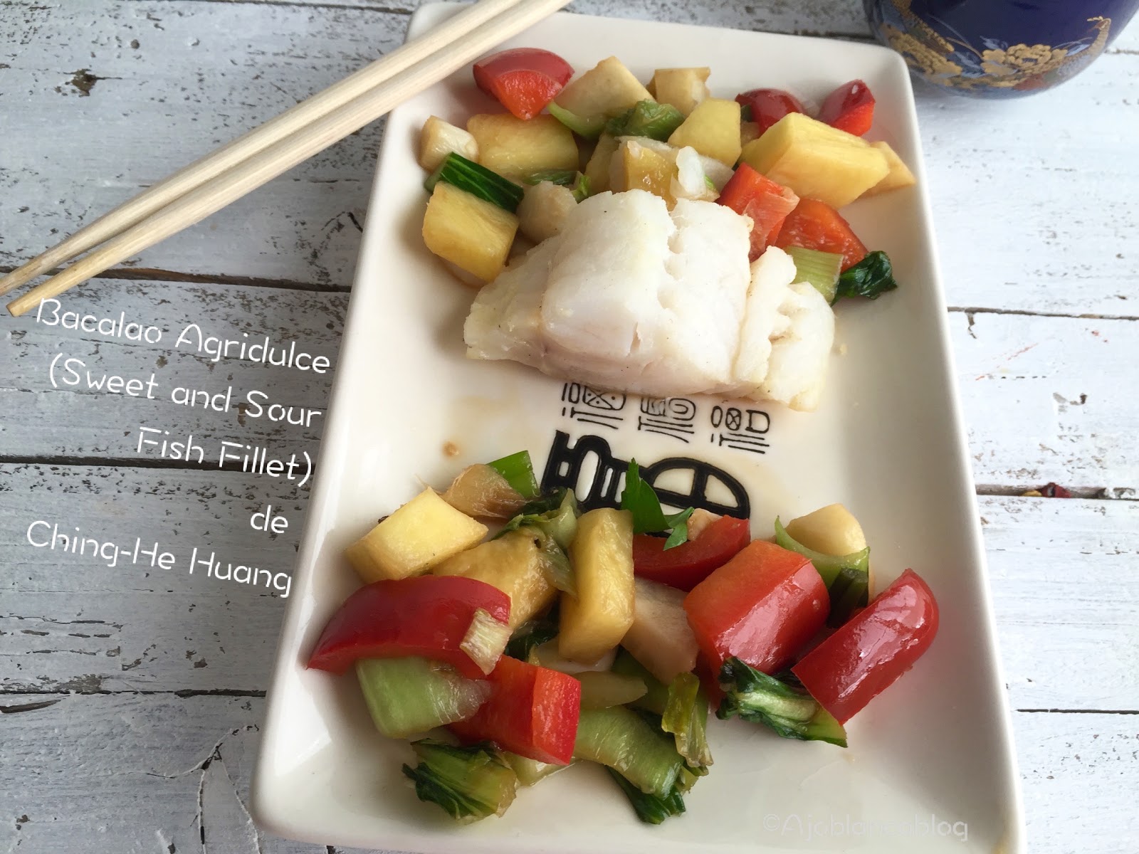 A cambio su cocina es sana, ligera, rápida, para nada complicada y tengo que decir, que muy rica y sabrosa. Este pescado agridulce que he hecho esta buenísimo, tanto, que hemos repetido la ensalada, porque para nosotros ha sido un descubrimiento esta sencilla, rica y nutritiva ensalada de bacalao y ... nos la hemos comido con tenedor ;-)))). Una agradable sorpresa porque nada tiene que ver con la cocina china que estamos acostumbrados a comer en restaurantes al uso. Os la recomiendo.